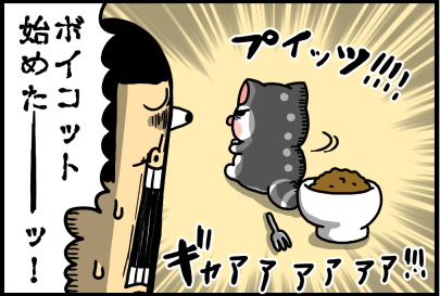 ジャンク飯を求めてついにボイコットに目覚める猫